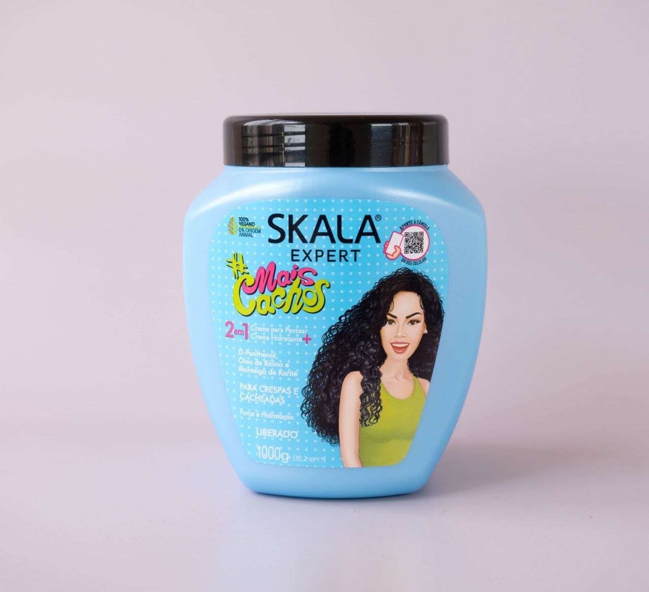 Skala Expert Mais Cachos 2 en 1 combina la acción de una crema de peinar y un tratamiento hidratante en un solo producto, ideal para cabellos rizados y crespos.